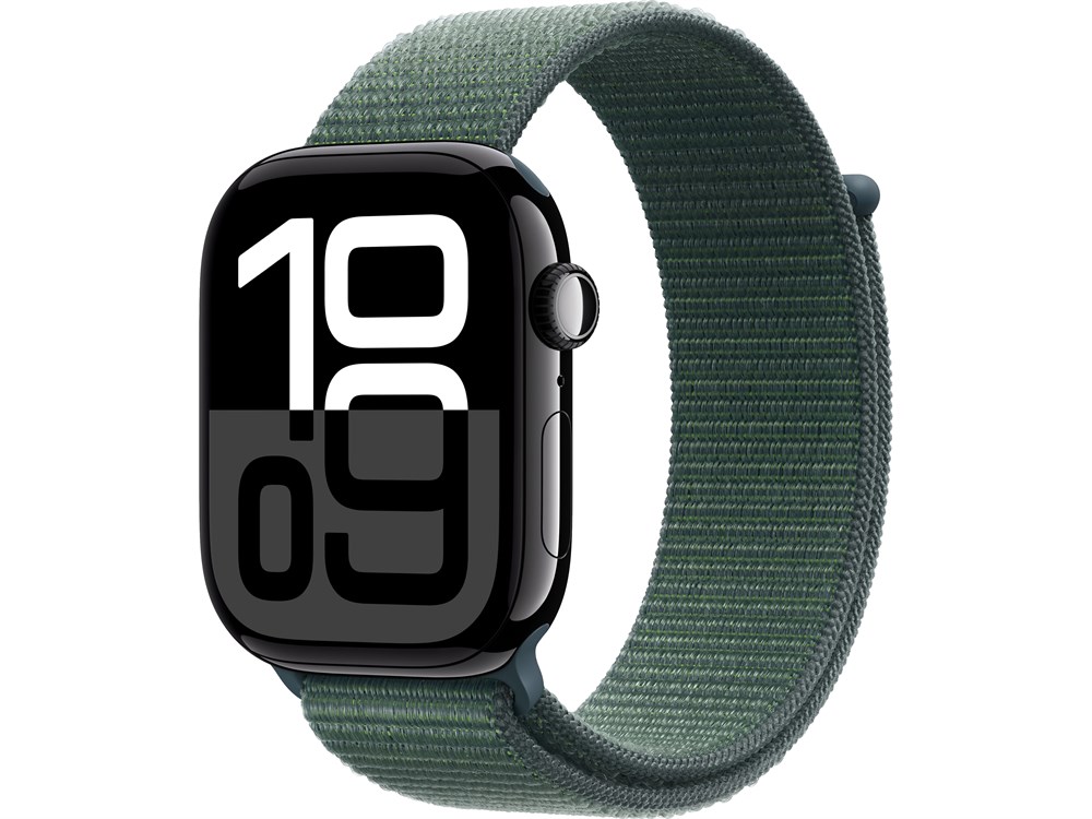 Умные смарт-часы Apple Watch Series 10, 42 мм, Jet Black, Алюминиевый корпус с Lake Green Sport Loop