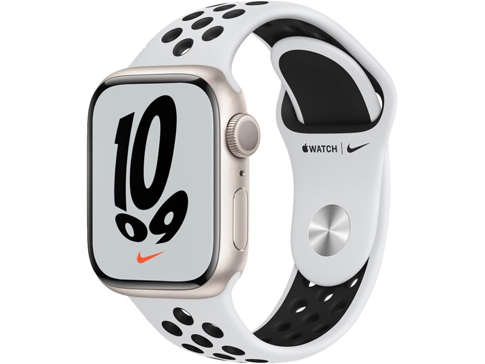Умные смарт-часы Apple Watch Series 7 41mm, корпус из алюминия в цвете Starlight (Сияющая звезда), Спортивный ремешок Nike MKN33RU