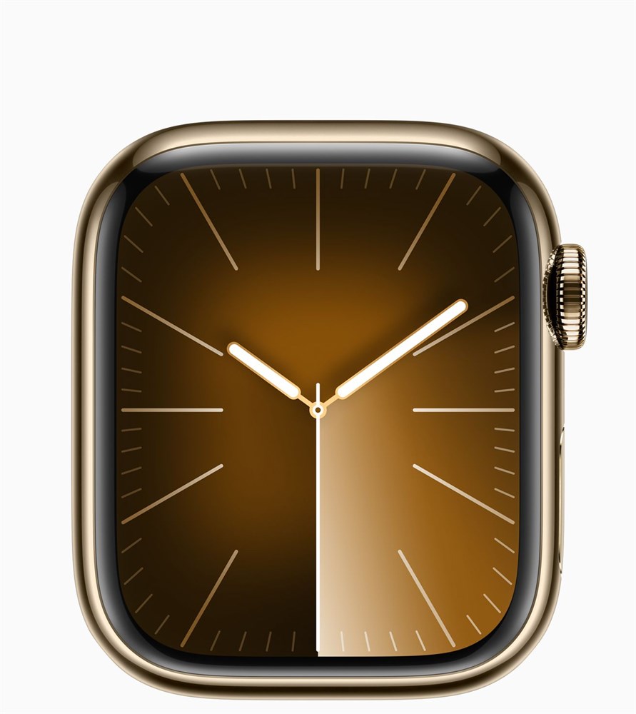 Купить Apple Watch Series 9 41 мм корпусс из нержавеющей стали Золотой MRQ23 спортивный ремешок в цвете Midnight - S/M (140-190 мм) - цена 0 руб. в СУЕТОЛОГ