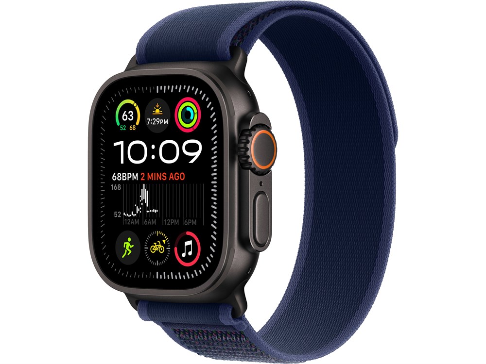 Купить Apple Watch Ultra 2 49 мм Чёрный Титан корпус c Blue Trail Loop ремешком - S/M (130-180 мм)