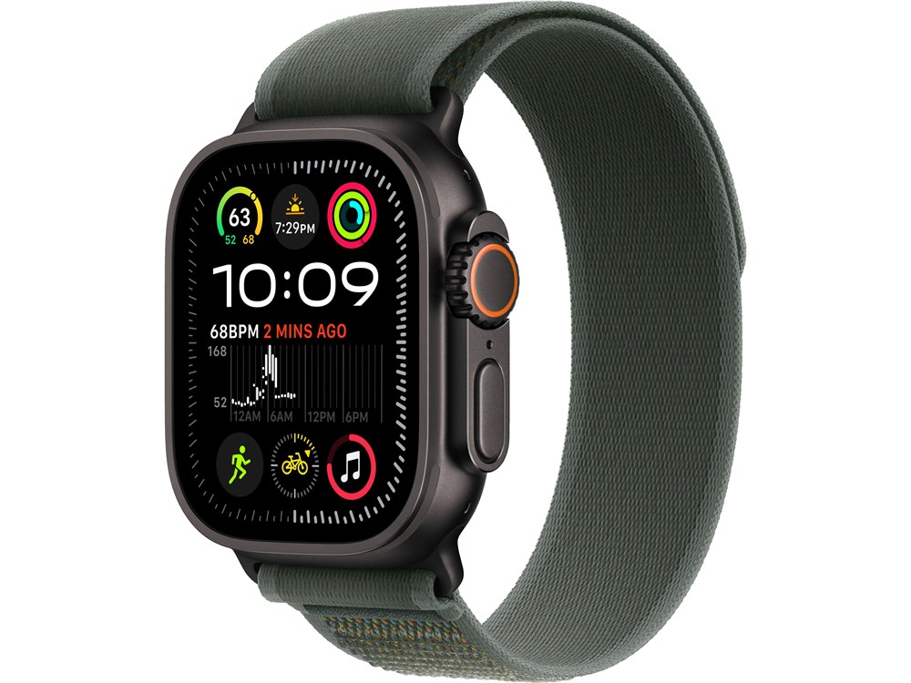 Купить Apple Watch Ultra 2 49 мм Чёрный Титан корпус c Green Trail Loop ремешком - M/L (145-220 мм)