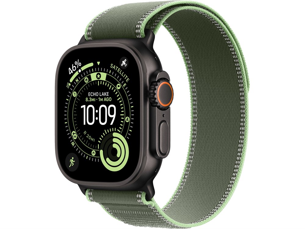 Купить Apple Watch Ultra 3, 49 мм, чёрный титановый корпус, Green/Neon Trail браслет - S/M (130-180 мм)