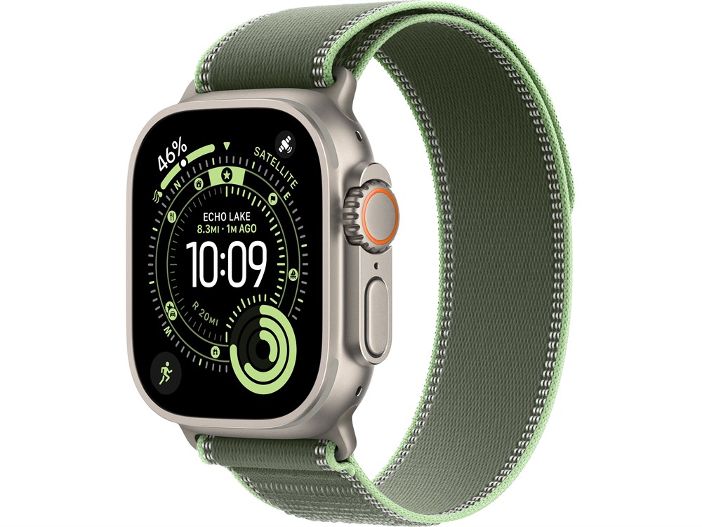 Купить Apple Watch Ultra 3, 49 мм, натуральный титановый корпус, Green/Neon Trail браслет - M/L (145-220 мм)